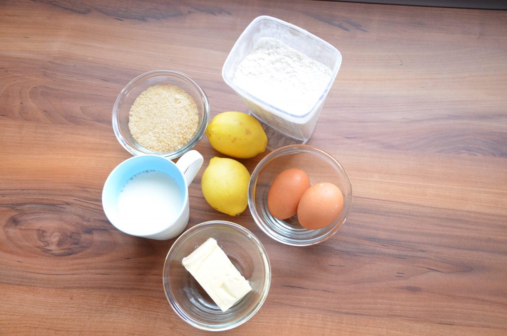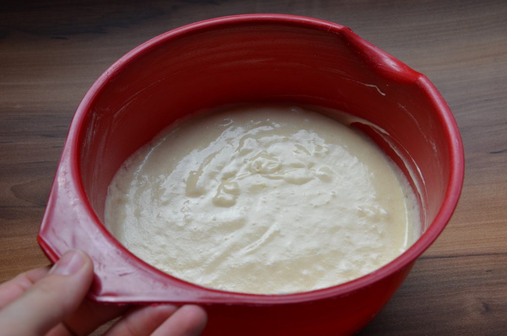 Máslo vyšleháme s vejci a cukrem. Přidáme mléko a pořádně vše spojíme. Postupně přisypeme mouku smíchanou s práškem do pečiva. Nakonec kůru a šťávu z citronů.