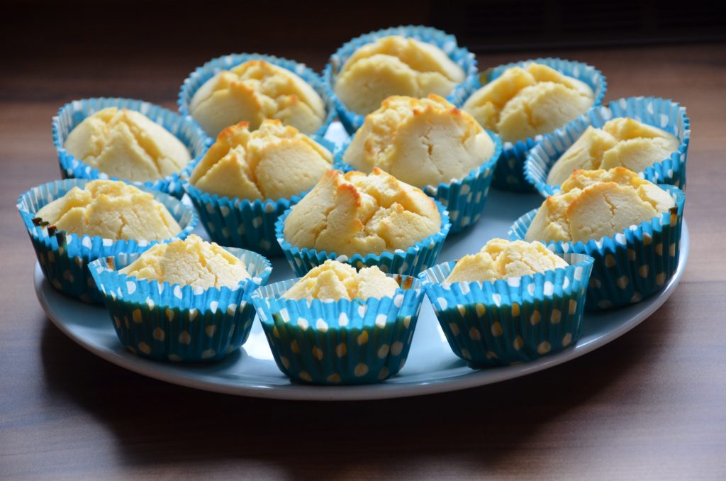 Plech na muffiny (nebo do silikonové formičky) vyložíme papírovými košíčky. Plníme do 3/4 košíčku a dáme péct na 180°C 20 – 25 minut.